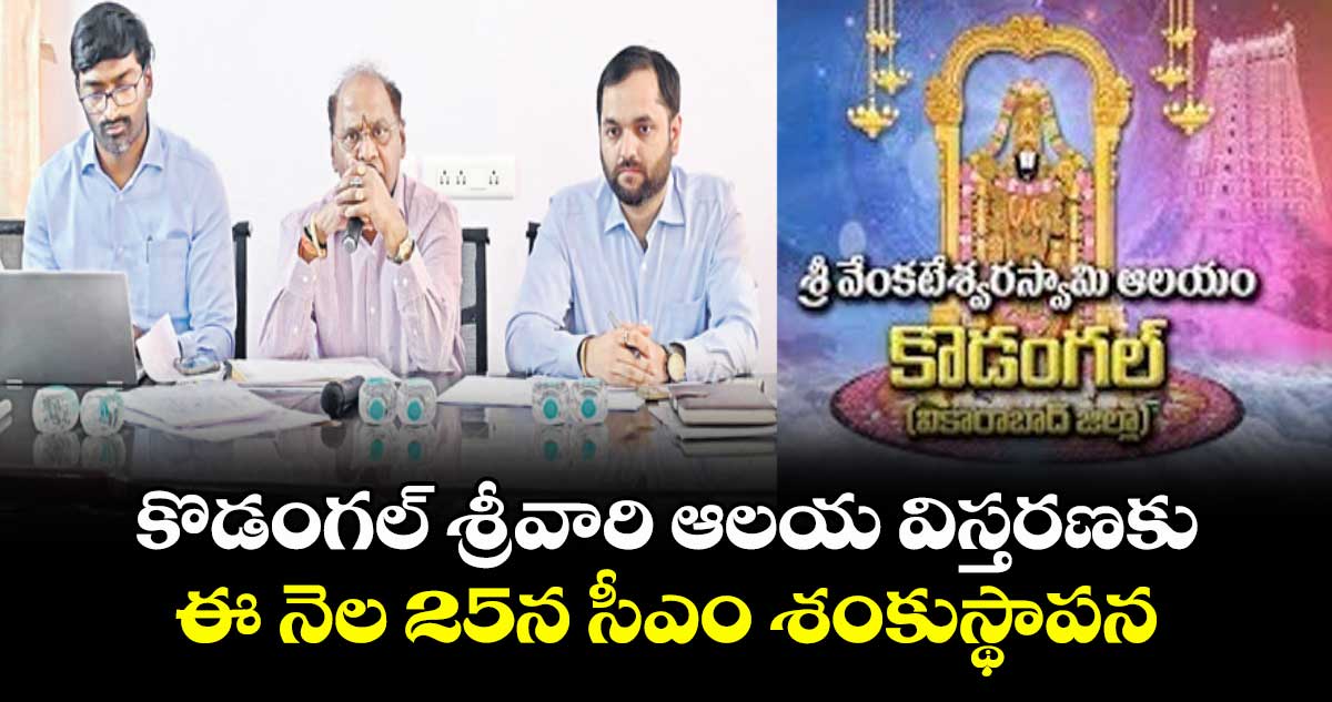 ఈ నెల 25న సీఎం రేవంత్ రెడ్డి కొడంగల్లో పర్యటించి ఈ అభివృద్ధి పనులకు శంకుస్థాపన చేయనున్న నేపథ్యంలో ఏర్పాట్లను పక్కాగా చేయాలని ఆదేశించారు. భక్తులకు అవసరమైన క్యూలైన్లు, తాగునీరు వంటి మౌలిక సదుపాయాలను మెరుగుపరచాలని స్పష్టం చేశారు. ఇప్పటికే ఆలయ విస్తరణలో ఇళ్లు కోల్పోయిన నిర్వాసితులకు పరిహారం అందజేయడంతోపాటు లక్కీ డిప్ ద్వారా ఇళ్ల స్థలాలను కూడా కేటాయించారు. ఈ కార్యక్రమంలో కడా ఆఫీసర్ వెంకట్ రెడ్డి, అడిషనల్ కలెక్టర్ రాజేశ్వరి, ఇతర ఉన్నతాధికారులు పాల్గొన్నారు.