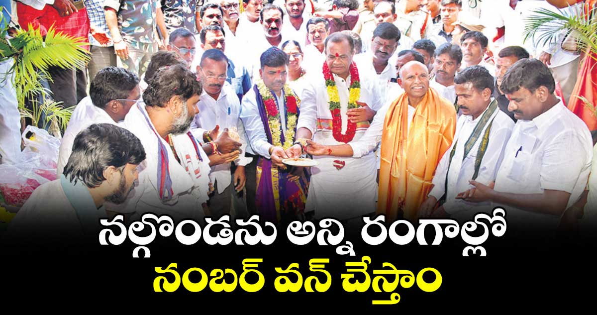 నల్గొండ, వెలుగు: రాష్ట్ర ప్రభుత్వం మహిళా స్వయం సహాయక సంఘాల ఆర్థికాభివృద్ధికి పెద్దపీట వేస్తోందని, అందులో భాగంగా నల్గొండ ఎస్ఎల్బీసీ సమీపంలో రూ.5 కోట్లతో పెట్రోల్ బంకు, సూపర్ మార్కెట్, రెస్టారెంట్ను ఏర్పాటు చేస్తున్నట్లు మంత్రి కోమటిరెడ్డి వెంకటరెడ్డి తెలిపారు. గురువారం నల్గొండ జిల్లా కనగల్ మండల కేంద్రంలో రూ.6 కోట్లతో నిర్మించనున్న ప్రభుత్వ జూనియర్ కళాశాల భవనానికి భూమిపూజ చేసి, కల్యాణ లక్ష్మి చెక్కులను పంపిణీ చేశారు. ఈ సందర్భంగా ఆయన మాట్లాడుతూ సీఎం రేవంత్ రెడ్డి సహకారంతో నల్గొండను రాష్ట్రంలోనే అగ్రగామిగా తీర్చిదిద్దుతామన్నారు.