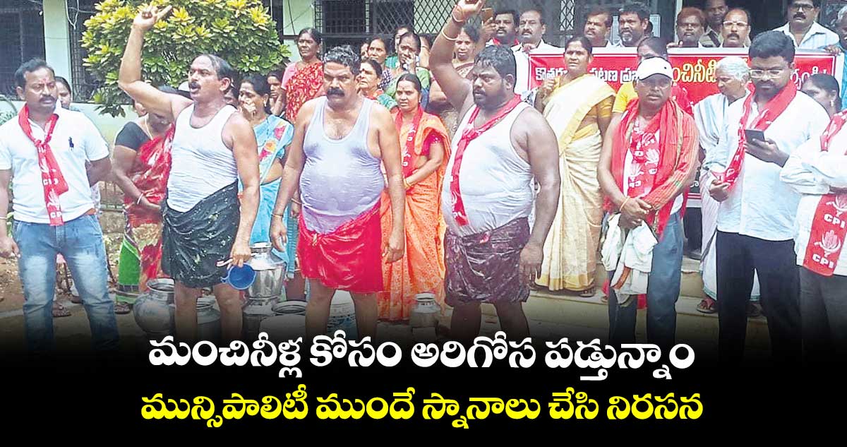 భద్రాద్రికొత్తగూడెం, వెలుగు : కొత్తగూడెం మున్సిపాలిటీ పరిధిలో మంచినీళ్ల కోసం కష్టాలు పడుతున్నామంటూ సీపీఐ కౌన్సిలర్ల ఆధ్వర్యంలో నిరసన చేపట్టారు. మున్సిపల్ ఆఫీసు ఎదుటే స్నాలు చేసి ఆందోళనకు దిగారు. వారిని అడ్డుకోవడానికి పోలీసులతో కౌన్సిలర్లు వాగ్వాదానికి దిగడంతో ఉద్రిక్తత నెలకొంది. గురువారం ఉదయం అమరవీరుల స్థూపం నుంచి మున్సిపల్ ఆఫీస్ వరకు ఖాళీ కుండలు, బకెట్లతో ర్యాలీ నిర్వహించారు. మంచినీళ్ల కోసం గోస పడ్తున్నా ఎమ్మెల్యే వనమా వెంకటేశ్వరరావు, చైర్ పర్సన్ కె. సీతాలక్ష్మి, ఆఫీసర్లు పట్టించుకోవడం లేదని ఫైర్ అయ్యారు.