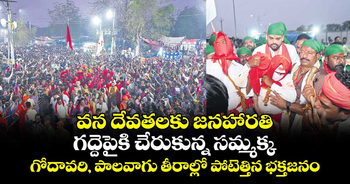 అక్కడి నుంచి భారీ జనసమూహంతో సమ్మక్కను ఊరేగింపుగా జాతర ప్రాంగణానికి తీసుకొచ్చి గద్దెపై ప్రతిష్టించారు. రాష్ట్ర కార్మిక, గనుల శాఖ మంత్రి వివేక్ వెంకటస్వామి, మాజీ ఎమ్మెల్యే బాల్క సుమన్, మందమర్రి సింగరేణి జీఎం రాధాకృష్ణ–శ్రీవాణి దంపతులు, ఏఐటీయూసీ స్టేట్ ప్రెసిడెంట్ వాసిరెడ్డి సీతారామయ్య, డీసీసీ ప్రెసి డెంట్ రఘునాథ్ రెడ్డి, రాజకీయ, కార్మిక సంఘాల లీడర్లు వనదేతలను దర్శించుకున్నారు.