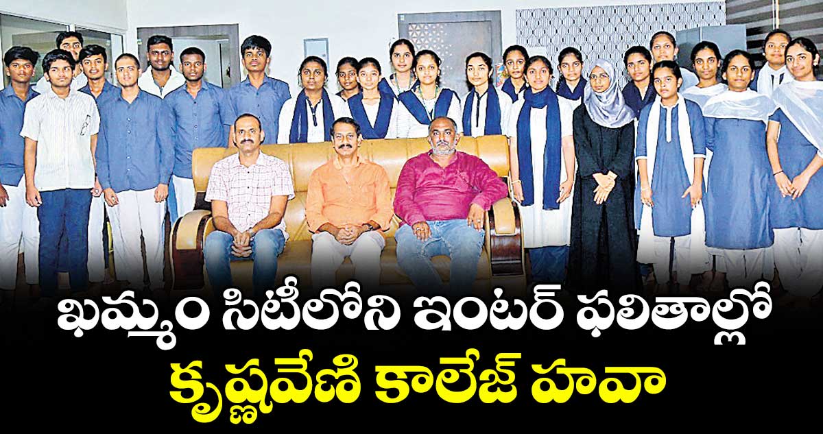 ఖమ్మం టౌన్, వెలుగు: ఇంటర్ ఫలితాల్లో ఖమ్మం సిటీలోని కృష్ణవేణి జూనియర్ కాలేజ్ స్టూడెంట్స్ అత్యుత్తమ మార్కులు సాధించినట్లు కాలేజ్ డైరెక్టర్లు గొల్లపూడి జగదీశ్, మాచవరపు కోటేశ్వరరావు, యార్లగడ్డ వెంకటేశ్వరరావు తెలిపారు. సీనియర్ ఎంపీసీ గ్రూప్ లో కె.కావ్యకళ995 మార్కులు సాధించగా, ఎన్.చందన 995, ఎన్.నవదీప్ 994, వీ.గణేశ్994, బీపీసీలో జి.ప్రహర్ష 994, బి.సాయి కీర్తన 992, మైత్రేయి 990 సాధించినట్లు చెప్పారు.
