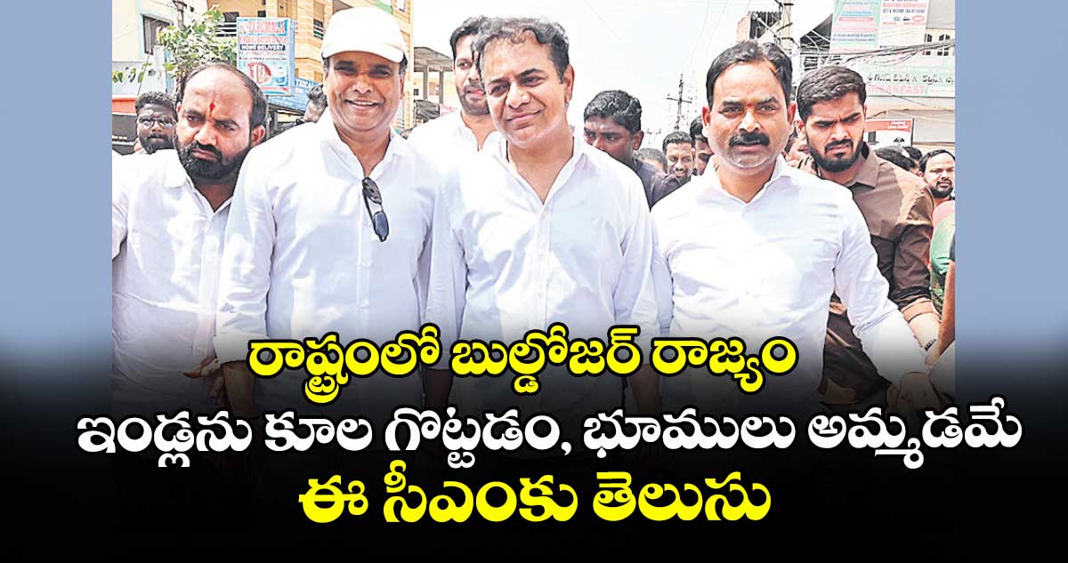‘‘దేశంలో బీజేపీ బుల్డోజర్ రాజ్యం నడిపిస్తుందంటూ.. కాంగ్రెస్ అగ్రనేత రాహుల్ గాంధీ, ఇతర నేతలు విమర్శిస్తుంటే, తెలంగాణలో కాంగ్రెస్ బుల్డోజర్ రాజ్యం, అరాచకాలు మాత్రం వారికి కనబడటం లేదు. సీఎం రేవంత్ రెడ్డి పంపిస్తున్న డబ్బు సంచుల కోసం మౌనంగా చూస్తున్నారు. రేవంత్ రెడ్డికి తెలిసిన పాలన కేవలం ఇండ్లను కూలగొట్టడం, భూములు ఆక్రమించడం, రియల్ ఎస్టేట్ దందా చేయడం మాత్రమే.. దాని కోసం పేదల జీవితాలను నాశనం చేస్తున్నరు’’అని కేటీఆర్ మండిపడ్డారు.