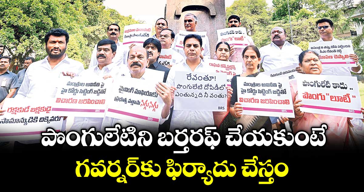 హైదరాబాద్, వెలుగు: అక్రమ మైనింగ్కు పాల్పడిన ఇతర సంస్థలపై చట్టపరమైన చర్యలు తీసుకున్న ప్రభుత్వం.. రాఘవ కన్స్ట్రక్షన్స్పై ఎందుకు చర్యలు తీసుకోవడం లేదని బీఆర్ఎస్ వర్కింగ్ ప్రెసిడెంట్ కేటీఆర్ ప్రశ్నించారు. మంత్రి కంపెనీ కావడం వల్ల చర్యలు తీసుకోవడం లేదా..? లేదంటే సీఎం పాత్ర ఉందని తీసుకోవడం లేదా? అని నిలదీశారు. పొంగులేటిని మంత్రి పదవి నుంచి వెంటనే బర్తరఫ్ చేయాలని, లేదంటే గవర్నర్కు ఫిర్యాదు చేస్తామని హెచ్చరించారు. ఈ మేరకు ఆదివారం గన్పార్క్ వద్ద బీఆర్ఎస్ ఎమ్మెల్యేలు నిరసన కార్యక్రమం చేపట్టారు. ఈ సందర్భంగా కేటీఆర్మాట్లాడుతూ అక్రమాలు జరిగాయని అంగీకరించారని, వాటిని ప్రభుత్వమే బయటపెట్టడంతో ఎదురు దాడి చేస్తున్నారని మండిపడ్డారు.