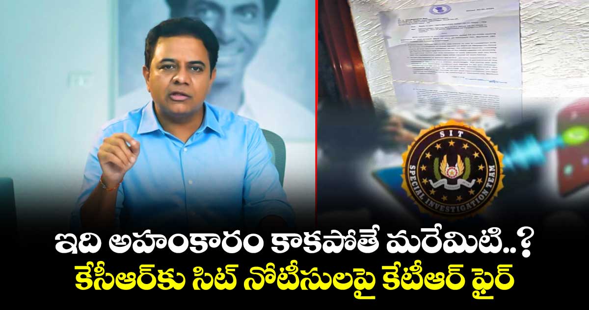 హైదరాబాద్: ఫోన్ ట్యాపింగ్ కేసులో తనను ఫామ్హౌస్లోనే విచారించాలన్న కేసీఆర్ అభ్యర్థనను సిట్ తిరస్కరించడంపై కేటీఆర్ ఆగ్రహం వ్యక్తం చేశారు. ప్రధాన ప్రతిపక్ష నాయకుడు కేసీఆర్పై ఈ దుర్మార్గపు వైఖరి ఏంటి అంటూ సీఎం రేవంత్ రెడ్డిని ప్రశ్నించారు. కేసీఆర్ తానుంటున్న నివాసానికి సంబంధించిన అడ్రస్తో సహా పోలీసులకు రిప్లై ఇచ్చాక కూడా ఆయన లేని నివాసానికి రాత్రిపూట వచ్చి గేటుకు నోటీసులు అంటించి పైశాచిక ఆనందం పొందడం దారుణమన్నారు.