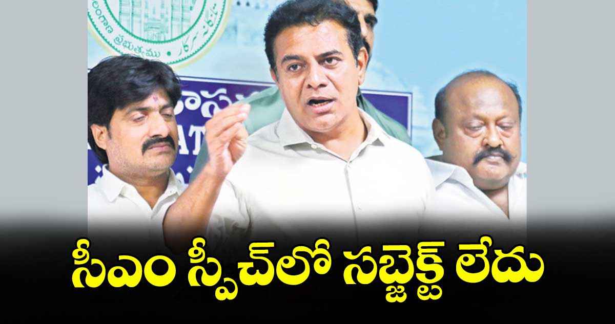 హైదరాబాద్, వెలుగు: ‘‘ఐఐటీ, ఐఐఐటీకి తేడా తెలువని వ్యక్తి ముఖ్యమంత్రి అయ్యారు.. కేరళ ఎన్నికల నిధుల కోసం ప్రణాళికకు తెరలేపారు.. పేదల ఇండ్లు కూల్చారు తప్ప, ఒక్క ఇల్లు కట్టలేదు”అని బీఆర్ఎస్ వర్కింగ్ ప్రెసిడెంట్ కేటీఆర్ విమర్శించారు. బుధవారం అసెంబ్లీ మీడియా పాయింట్వద్ద ఆయన మాట్లాడారు. తాము మిషన్ కాకతీయలో 30 వేల చెరువులు అభివృద్ధి చేస్తే మీరు మూడు చెరువులు అభివృద్ధి చేసి డబ్బా కొట్టుకుంటున్నారన్నారు. సీఎం రేవంత్ రెడ్డి ప్రసంగంలో సబ్జెక్టు లేదని, ఆరు గ్యారంటీల ప్రస్తావనే లేదన్నారు. ప్రభుత్వం ఇచ్చిన హామీల అమలుపై స్పష్టత ఇవ్వాలని డిమాండ్ చేశారు.