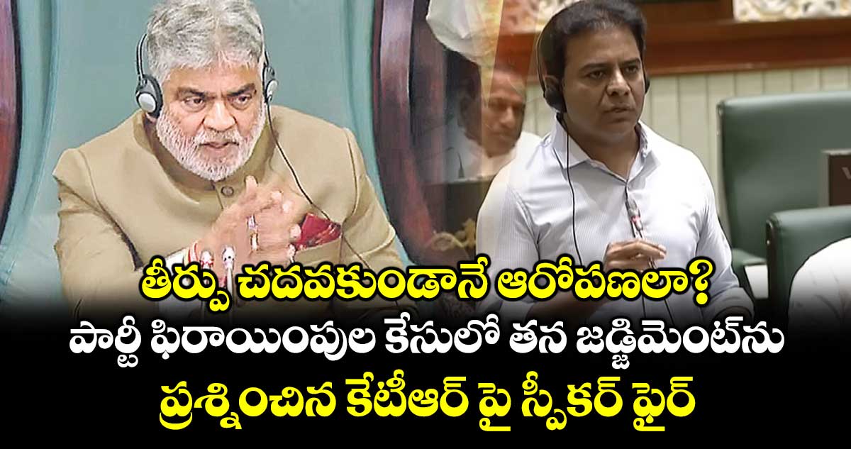 హైదరాబాద్, వెలుగు: పార్టీ ఫిరాయింపుల వ్యవహారంలో తాను ఇచ్చిన తీర్పును పూర్తిగా చదవకుండా ఆరోపణలు చేయడం సరికాదని, జడ్జిమెంట్లోని అన్ని విషయాలు చదివి మాట్లాడితే తప్పకుండా సమాధా నం ఇస్తానని కేటీఆర్కు స్పీకర్ గడ్డం ప్రసాద్ కుమార్ తేల్చి చెప్పారు. గవర్నర్ స్పీచ్కు ధన్యవాదాలు తెలిపే తీర్మానంపై చర్చ సందర్భంగా కేటీఆర్ మాట్లాడుతూ ‘మా పార్టీ నుంచి ఎమ్మెల్యేగా గెలిచి, కాంగ్రెస్ నుంచి ఎంపీగా పోటీచేసిన వ్యక్తికి అనుకూలంగా మీరు నిర్ణ యం తీసుకున్నారు.. మీరంటే మాకు సంపూర్ణమైన గౌరవం ఉంది.. కానీ, మా అప్పీల్ వినండి” అనగానే స్పీకర్ ప్రసాద్ జోక్యం చేసుకున్నారు.