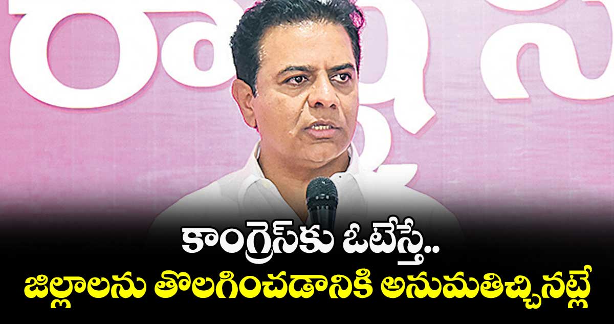 హైదరాబాద్, వెలుగు: కాంగ్రెస్కు ఓటేస్తే జిల్లాల తొలగింపునకు ప్రజలు అనుమతి ఇచ్చినట్లేనని బీఆర్ఎస్ వర్కింగ్ ప్రెసిడెంట్ కేటీఆర్ అన్నారు. మున్సిపల్ ఎన్నికల్లో కాంగ్రెస్ను ఓడించాలని ప్రజలను ఆయన కోరారు. బుధవారం తెలంగాణ భవన్లో మీడియాతో ఆయన చిట్చాట్ చేశారు. ఎన్నికల కోసం మున్సిపాలిటీల వారీగా పార్టీ ఇన్చార్జులను నియమిస్తామన్నారు. మరో రెండు రోజుల్లో ఇన్చార్జులను ప్రకటిస్తామని చెప్పారు. ఇప్పటికే జిల్లాల వారీగా సన్నాహక సమావేశాలు పూర్తయ్యాయని, ఎన్నికలకు పార్టీ పూర్తి స్థాయిలో సిద్ధంగా ఉందని వెల్లడించారు.