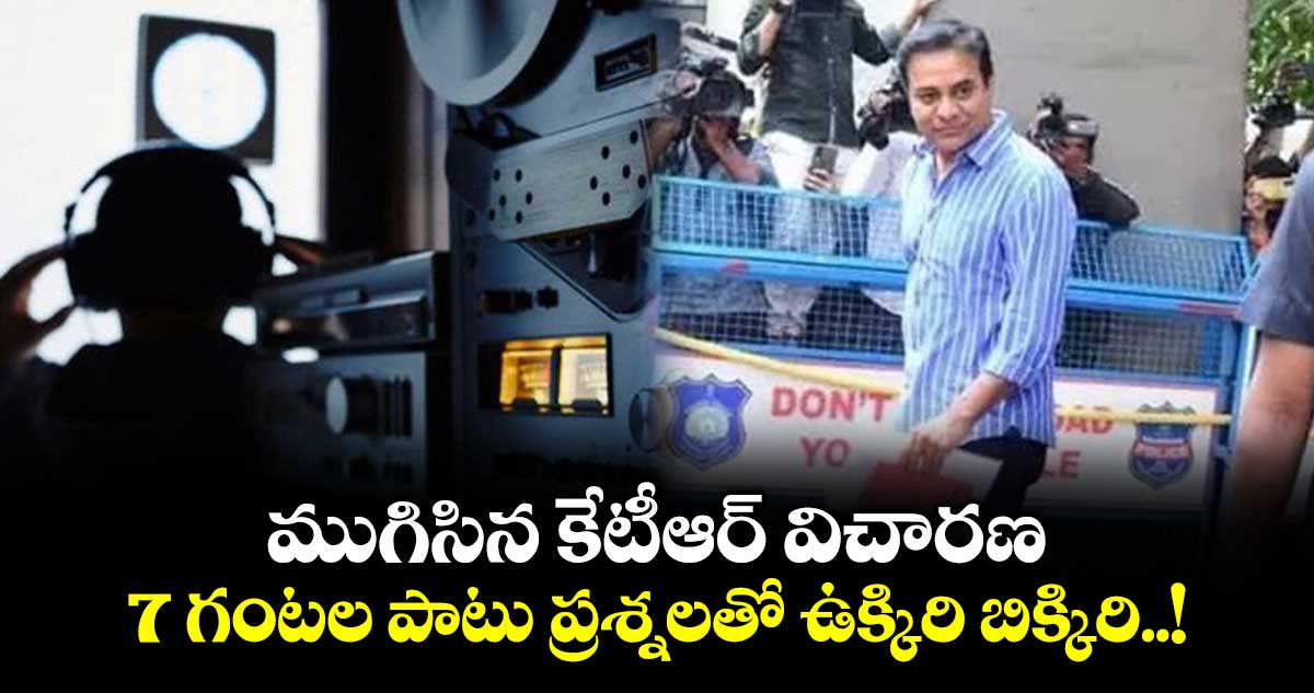 హైదరాబాద్: ఫోన్ ట్యాపింగ్ కేసులో బీఆర్ఎస్ వర్కింగ్ ప్రెసిడెంట్ కేటీఆర్ విచారణ ముగిసింది. శుక్రవారం (జనవరి 23) ఉదయం 11 గంటల నుంచి దాదాపు 7 గంటల పాటు జూబ్లీహిల్స్ పోలీస్ స్టేషన్లో సిట్ అధికారులు ఆయనను ప్రశ్నించారు. 2023 తెలంగాణ అసెంబ్లీ ఎన్నికల సమయంలో బీఆర్ఎస్ పార్టీకి వచ్చిన విరాళాలు, ఎలక్టోరల్ బాండ్లు.. బీఆర్ఎస్ ప్రభుత్వ హయాంలో కొందరు వ్యాపారవేత్తలు, రాజకీయ నేతల ఫోన్ల ట్యాపింగ్కు సంబంధించి కేటీఆర్పై అధికారులు ప్రశ్నల వర్షం కురిపించినట్లు తెలిసింది. అలాగే ఈ కేసులో నిందితుడు, టాస్క్ఫోర్స్ మాజీ డీసీపీ రాధాకిషన్ రావు, కేటీఆర్ను కలిపి గంట పాటు ఇన్విస్టిగేట్ చేసినట్లు సమాచారం.