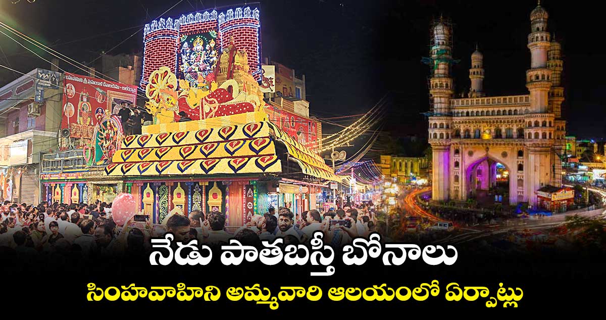 హైదరాబాద్, వెలుగు: పాత బస్తీ బోనాలు ఆదివారం జరగనున్నాయి. లాల్ దర్వాజ సింహవాహిని మహంకాళి అమ్మవారి ఆలయం ఇందుకోసం ముస్తాబైంది. బోనాలు సమర్పించేందుకు పెద్ద ఎత్తున భక్తులు తరలివచ్చే అవకాశం ఉండటంతో భారీగా ఏర్పాట్లు చేశారు. ప్రత్యేకంగా క్యూలైన్లు పెట్టారు. తెల్లవారుజామున అమ్మవారికి బలిహరణం, దేవీ అభిషేకం తర్వాత బోనాలు సమర్పించనున్నారు. బోనాల ఉత్సవాల్లో భాగంగా సిటీలోని ఆలయాలను ప్రత్యేకంగా అలంకరించారు. ఆలయాలన్నీ విద్యుత్ కాంతుల్లో మెరిసిపోతున్నాయి. అన్ని ప్రధాన ఆలయాల్లో అమ్మవార్లకు ప్రభుత్వం తరపున పట్టు వస్త్రాలను అందజేయనున్నారు. పాతబస్తీలోని సింహవాహిని మహంకాళి అమ్మవారు