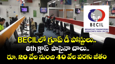 Read MoreBECILలో గ్రూప్ డీ పోస్టులు.. 8th క్లాస్ పాసైనా చాలు..రూ. 20 వేల నుంచి 40 వేల వరకు జీతం