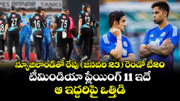 Read MoreIND vs NZ: న్యూజిలాండ్తో రేపు (జనవరి 23) రెండో టీ20.. టీమిండియా ప్లేయింగ్ 11 ఇదే.. ఆ ఇద్దరిపై ఒత్తిడి
