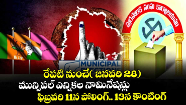 మున్సిపల్ ఎన్నికల్లో జనవరి 28 నుంచి నామినేషన్ల పర్వం మొదలు కానుంది. ఫిబ్రవరి 3 వరకు విత్ డ్రాలు నిర్వహించి అదే రోజు గుర్తులను కేటాయిస్తారు. ఫిబ్