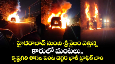 హైదరాబాద్ నుంచి శ్రీశైలం వెళ్తున్న కారులో మంటలు చెలరేగి ప్రమాదం చోటు చేసుకుంది. శనివారం (నవంబర్ 08) కృష్ణగిరి ఈగలపెంట దగ్గర జరిగిన ఈ ప్రమాదంలో కారు పూ