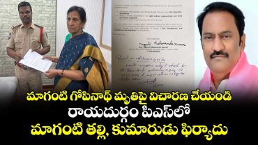 Read Moreమాగంటి గోపినాథ్ మృతిపై విచారణ చేయండి: రాయదుర్గం పీఎస్లో మాగంటి తల్లి, కుమారుడు ఫిర్యాదు
