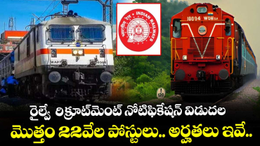 Read MoreRRB jobs: రైల్వే రిక్రూట్మెంట్ నోటిఫికేషన్ విడుదల.. మొత్తం 22వేల పోస్టులు.. అర్హతలు ఇవే..