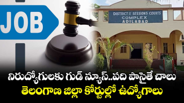 Read Moreనిరుద్యోగులకు గుడ్ న్యూస్..పది పాసైతే చాలు... తెలంగాణ జిల్లా కోర్టుల్లో ఉద్యోగాలు