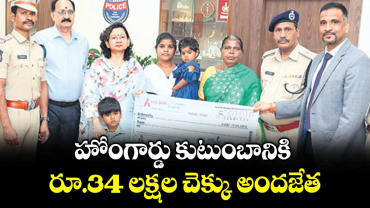 హైదరాబాద్, వెలుగు: విధి నిర్వహణలో ఉండగా ప్రమాదవశాత్తు మృతి చెందిన హోంగార్డు(1522) ఎం వెంకటేశ్ కుటుంబానికి పోలీస్ శాఖ రూ.34 లక్షల పరిహారం అందించింది. ఈ