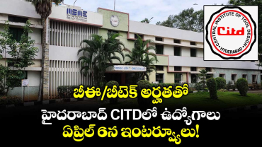Read Moreబీఈ/బీటెక్ అర్హతతో హైదరాబాద్ CITDలో ఉద్యోగాలు.. ఏప్రిల్ 6న ఇంటర్వ్యూలు!