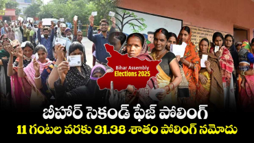 Read Moreబీహార్ సెకండ్ ఫేజ్ పోలింగ్: 11 గంటల వరకు 31.38 శాతం పోలింగ్ నమోదు