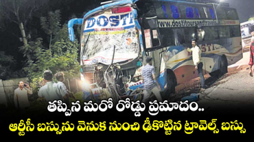 Read Moreతప్పిన మరో రోడ్డు ప్రమాదం.. ఆర్టీసీ బస్సును వెనుక నుంచి ఢీకొట్టిన ట్రావెల్స్ బస్సు