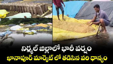 నిర్మల్ జిల్లాలో భారీ వర్షం.. ఖానాపూర్ మార్కెట్ లో తడిసిన వరి ధాన్యం