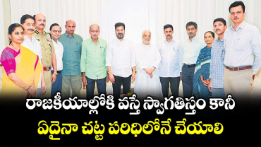 Read Moreరాజకీయాల్లోకి వస్తే స్వాగతిస్తం కానీ.. ఏదైనా చట్ట పరిధిలోనే చేయాలి: సీఎం రేవంత్ రెడ్డి