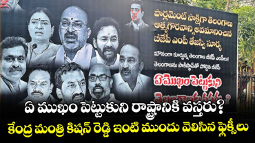 ఏ ముఖం పెట్టుకుని రాష్ట్రానికి వస్తరు?...కేంద్ర మంత్రి కిషన్ రెడ్డి ఇంటి ముందు వెలిసిన ఫ్లెక్సీలు