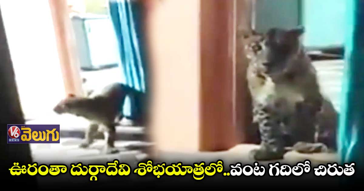 మహారాష్ట్రలో ఓ చిరుత పులి హల్ చల్ చేసింది. ఎవరూలేని సమయంలో ఇంట్లోకి చొరబడింది. ఊరంతా దుర్గాదేవి శోభయాత్రలో ఉండగా.. చిరుత పులి ఆగ్రామంలోకి ప్రవేశించి ఓ ఇంట్లో చొరబడింది. దుర్గాదేవి నిమజ్జనం అయిపోగానే తిరిగి ఇంటికి వచ్చిన కుటుంబ సభ్యులు..చిరుత పులిని చూసి షాక్ అయ్యారు. భయంతో అక్కడ నుంచి పరుగులు తీశారు. అటవీశాఖ అధికారులు వచ్చి చిరుతను బంధించారు. దీంతో గ్రామస్థులు ఊపిరిపీల్చుకున్నారు.