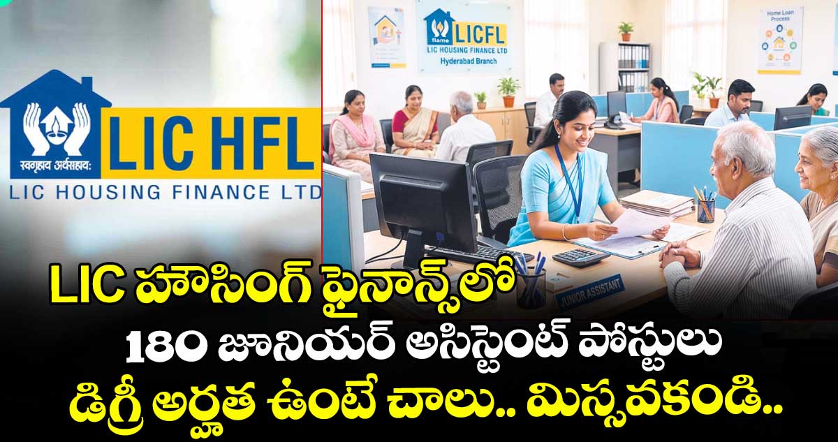 ఎల్ఐసీ హౌసింగ్ ఫైనాన్స్ లిమిటెడ్ (LIC HFL) జూనియర్ అసిస్టెంట్ పోస్టుల భర్తీకి నోటిఫికేషన్ విడుదల చేసింది. ఏదైనా గ్రాడ్యుయేట్ ఉత్తీర్ణులైన అభ్యర్థులు ఆన్లైన్లో దరఖాస్తు చేసుకోవచ్చు. ఆన్లైన్ దరఖాస్తు ప్రక్రియ ఏప్రిల్ 16న ప్రారంభమై ఏప్రిల్ 30న ముగుస్తుంది.