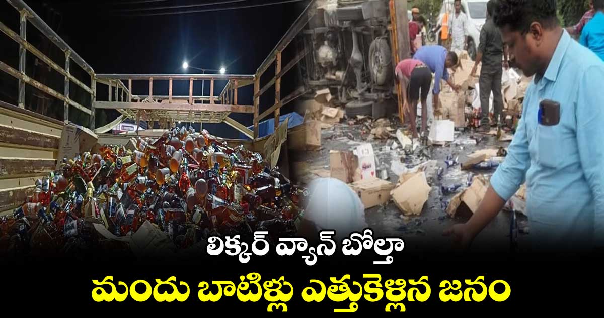మద్యం సీసాలతో వెళ్తున్న వాహనం టైరు పేలడంతో అదుపుతప్పి బోల్తా పడింది. దీంతో అందులో ఉన్న లిక్కర్ బాటిల్స్ నేల పాలయ్యాయి. సమాచారం కొన్ని నిమిషాల్లోనే ఆ ఏరియా స్ప్రెడ్ కావడంతో మద్యం ప్రియులు హుటాహుటీన అక్కడికి చేరుకుని అందిన కాడికి మద్యం సీసాలు ఎత్తుకెళ్లారు. రోడ్డుపై కొన్ని పగిలిపోగా, మిగిలిన వాటికోసం చాలామంది పోటీపడ్డారు.