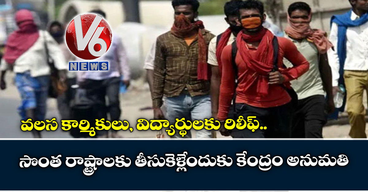 కరోనా వైరస్ వ్యాప్తి నియంత్రణ కోసం దేశ వ్యాప్తంగా అమలు చేస్తున్న లాక్ డౌన్ ఎక్కడికక్కడ చిక్కుకుపోయి ఇబ్బందులు పడుతున్న వలస కార్మికుల కష్టాలు తీరబోతున్నాయి. ఇతర రాష్ట్రాల్లో కూలీనాలీ చేసుకుని బతకడానికి వెళ్లిన ఉన్నట్టుండి లాక్ డౌన్ పెట్టడంతో నిలిచిపోయిన వారిని సొంత రాష్ట్రాలకు తీసుకెళ్లేందుకు కేంద్రం గ్రీన్ సిగ్నల్ ఇచ్చింది. వారితో పాటు కోచింగ్ సెంటర్లు, హాస్టళ్లలో ఉండిపోయిన విద్యార్థులు, ఆధ్యాత్మిక, విహార యాత్రలకు వెళ్లి తిరిగి రాలేకపోయిన వారిని కూడా సొంత ప్రాంతాలకు చేర్చేందుకు అనుమతిచ్చింది. వారిని స్వస్థలాలకు చేర్చేందుకు తీసుకోవాల్సిన చర్యలకు సంబంధించి కేంద్ర పాలిత ప్రాంతాలు, రాష్ట్రాల ప్రభుత్వాలకు బుధవారం కేంద్ర హోం శాఖ మార్గదర్శకాలను జారీ చేసింది.