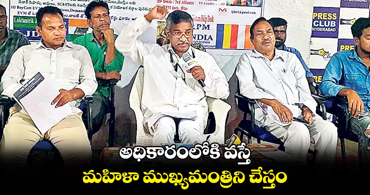 తాము అధికారంలోకి వస్తే తొలి ఏడాది మహిళను సీఎంను చేస్తామని, రెండో ఏడాది బీసీ వ్యక్తిని సీఎంను చేస్తామన్నారు. కూకట్పల్లి నుంచి భక్తవత్సలం, కోరుట్ల నుంచి ఎ.పాండురంగ పోటీ చేస్తారని, వారికి బీఫాంలు ఇచ్చినట్టు తెలిపారు.