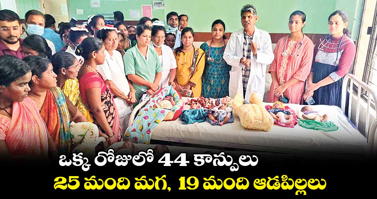 కాన్పుల్లో జన్మించిన 44 మంది పిల్లల్లో 25 మంది మగ, 19 మంది ఆడ పిల్లలు ఉన్నారని తెలిపారు. కాన్పుల్లో నార్మల్ డెలివరీలు 23 , సిజేరియన్లు 22 జరిగాయని వివరించారు. లో బర్త్ వెయిట్ ఉన్న వారిని ఎస్ఎన్సీయూలో అడ్మిట్ చేసినట్లు చెప్పారు. ఒకే రోజు 44 కాన్పులకు వైద్యం అందించిన డాక్టర్లను ఆయన అభినందించారు.
