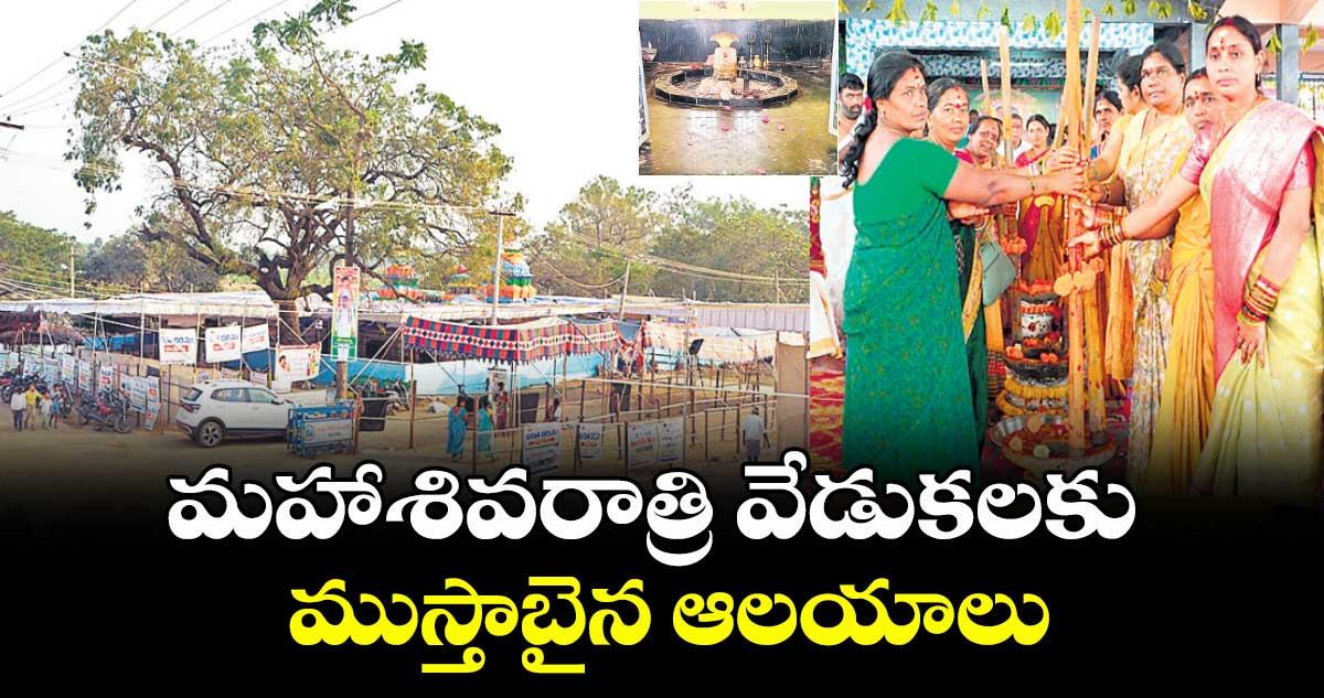 ఖమ్మం రూరల్, కారేపల్లి, పాల్వంచ, మధిర, వెలుగు : ఉమ్మడి ఖమ్మం జిల్లావ్యాప్తంగా మహాశివరాత్రి వేడుకలకు ఆలయాలు ముస్తాబయ్యాయి. ఆదివారం మహాశివరాత్రి పర్వదినం సందర్భంగా ఆలయాల్లో శివపార్వతుల కల్యాణం వైభవంగా నిర్వహించనున్నారు. ఖమ్మం రూరల్ మండలంలోని తీర్థాల సంగమేశ్వరస్వామి ఆలయం మహాశివరాత్రి వేడుకలకు ముస్తాబైంది. సంగమేశ్వరస్వామి ఆలయం మూడు నదుల కలయికతో ఏర్పడి పుణ్యక్షేత్రంగా ప్రసిద్ధి చెందింది.