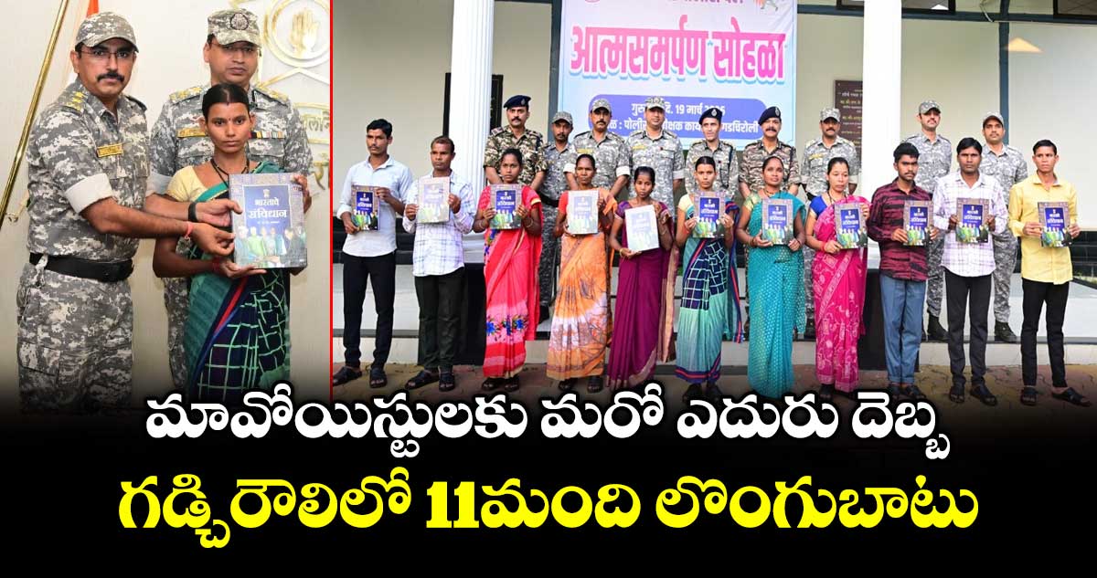 మహారాష్ట్రలోని గడ్చిరోలిలో మావోయిస్టులకు గట్టి ఎదురుదెబ్బ తగిలింది. ప్రభుత్వ లొంగుబాటు, పునరావాస విధానానికి ఆకర్షితులై, హింసా మార్గాన్ని వీడి 11 మంది కీలక మావోయిస్టులు గురువారం(మార్చి19) పోలీసుల ఎదుట లొంగిపోయారు. వారిలో డివిజనల్ కమిటీ మెంబర్ లాలు అలియాస్ మంగూ పోర్యామి, ఏరియా కమిటీ సెక్రటరీ కమలేష్ అలియాస్ గుండు జుగా మడావిలతో పాటు ఏడుగురు కమాండర్ స్థాయి నేతలు, ఇద్దరు సెక్షన్ స్థాయి సభ్యులు పోలీసుల ఎదుట సరెండర్ అయ్యారు.