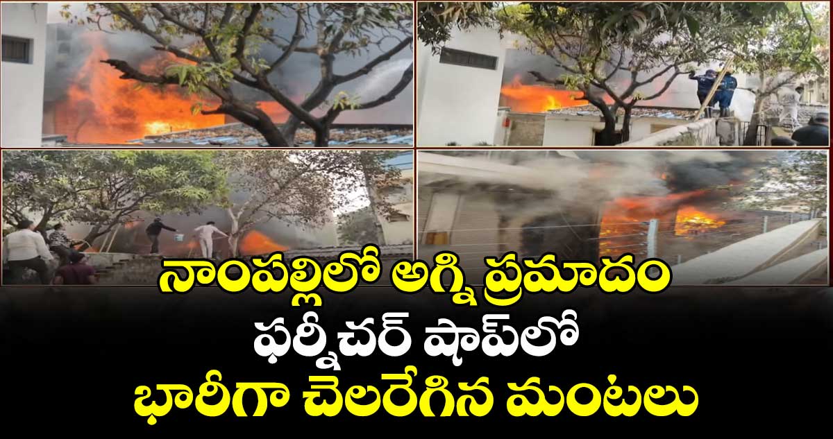 హైదరాబాద్: నాంపల్లిలో భారీ అగ్ని ప్రమాదం జరిగింది. స్టేషన్ రోడ్డులోని బచ్చ క్రిస్టల్ ఫర్నీచర్ షాప్లో ఒక్కసారిగా మంటలు చెలరేగాయి. నాలుగు అంతస్తుల బిల్డింగ్లో గ్రౌండ్ ఫ్లోర్ లో అగ్ని ప్రమాదం చోటు చేసుకుంది. మంటలు ఉవ్వెత్తున ఎగిసిపడుతూ పై అంతస్తులకు వ్యాపించాయి. బిల్డింగ్లో ఆరుగురు ఉన్నట్లు సమాచారం.