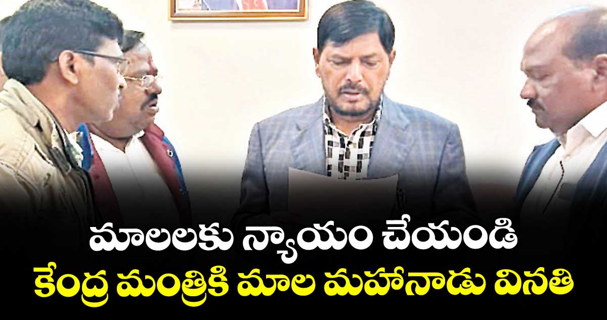 హైదరాబాద్ సిటీ, వెలుగు: తెలంగాణలోని మాలలతోపాటు 25 ఎస్సీ కులాలకు న్యాయం జరిగేలా చూడాలని కేంద్ర సామాజిక న్యాయ శాఖ మంత్రి రాందాస్ అథవాలేకు మాల మహానాడు జాతీయ అధ్యక్షుడు జి చెన్నయ్య, రాష్ట్ర అధ్యక్షుడు బూర్గుల వెంకటేశ్వర్లు విజ్ఞప్తి చేశారు.