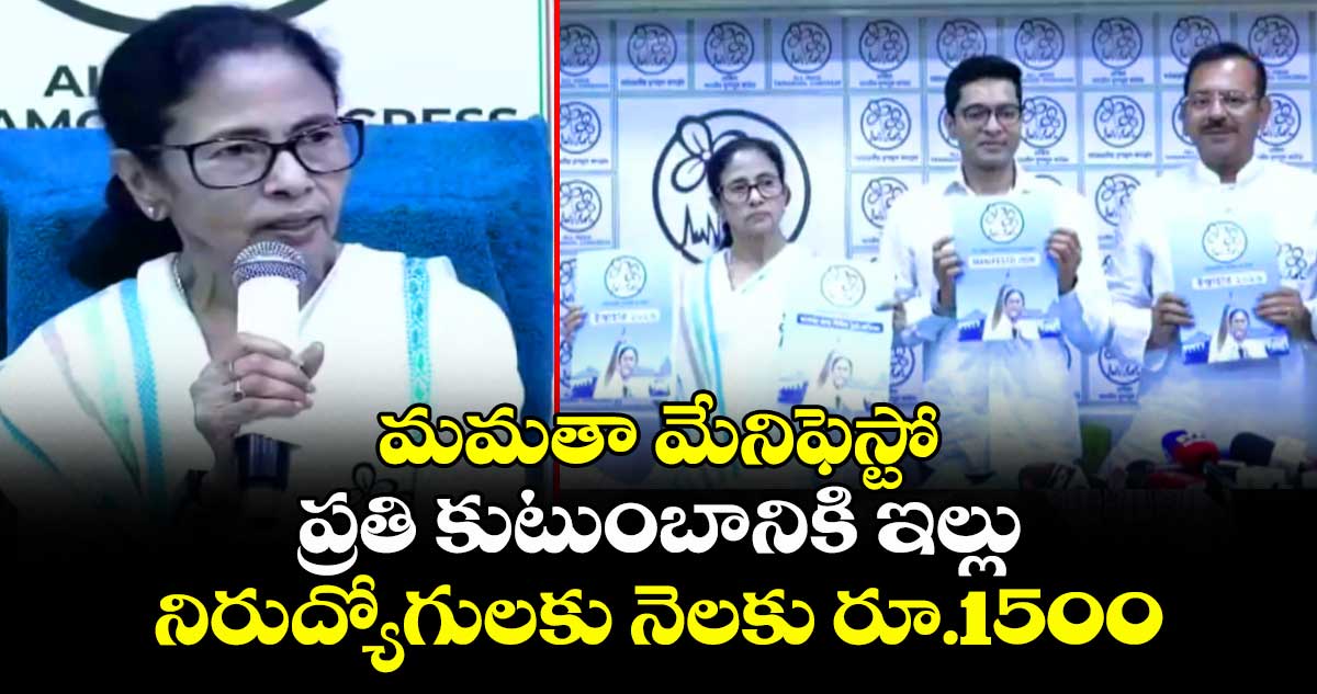 కోల్ కతా: అసెంబ్లీ ఎన్నికల్లో గెలుపే లక్ష్యంగా అధికార తృణమాల్ కాంగ్రెస్ పార్టీ (టీఎంసీ) దూకుడు పెంచింది. ఇప్పటికే అన్ని స్థానాలకు అభ్యర్థులను ప్రకటించిన టీఎంసీ శుక్రవారం (మార్చి 20) ఎన్నికల మేనిఫెస్టోను విడుదల చేసింది. మేనిఫెస్టోలో ‘‘బంగ్లా జొన్నొ దిదిర్ 10 ప్రతిజ్ఞ’’ పేరుతో 10 ప్రధాన హామీలు ప్రకటించింది టీఎంసీ. ఇందులో ప్రతి కుటుంబానికి పక్కా ఇల్లు, నిరుద్యోగులకు నెలకు రూ.1500 నిరుద్యోగ భృతి వంటి హామీలు ఉన్నాయి. మేనిఫెస్టో విడుదల సందర్భంగా సీఎం మమతా బెనర్జీ మాట్లాడుతూ.. టీఎంసీ ప్రకటించిన 10 హామీలు రాష్ట్ర అభివృద్ధికి దోహదపడతాయని పేర్కొన్నారు.