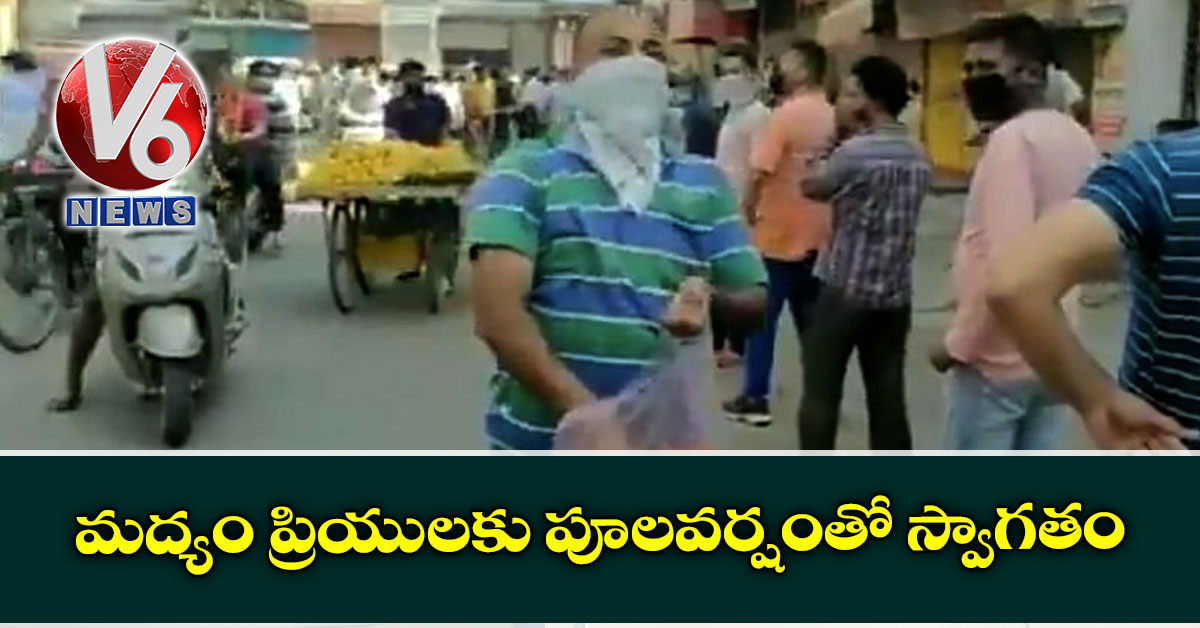 లిక్కర్ కోసం క్యూలైన్లలో నిల్చున్న మద్యం ప్రియులపై ఓ వ్యక్తి పూలవర్షం కురిపిస్తూ వెళ్లాడు. చేతిలో పూల కవర్ తో వచ్చి షాపు ముందు బారుల తీరిన జనం మీద ఒక్కొక్కరిపై చల్లాడు. ‘ఈ దేశానికి మీరే దిక్కు. దేశలోని సంపదంతా మీ చేతుల్లోనే ఉంది. ప్రభుత్వ దగ్గరే ఏమీ లేదు.. ’ అంటూ పొగడ్తల వర్షం కురిపించాడు. నమస్కారాలు కూడా పెట్టాడు. ఇందుకు సంబధించిన వీడియో వైరల్ అవుతోంది.
