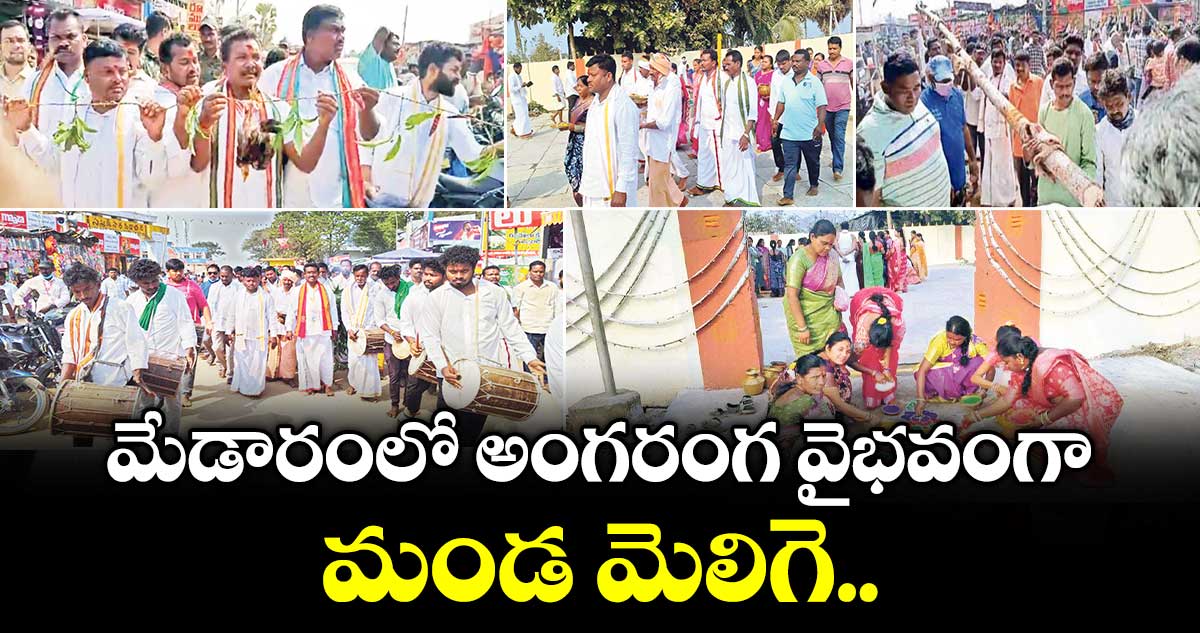 తాడ్వాయి : మేడారం సమ్మక్క సారలమ్మ దేవతల మండ మెలిగే పండుగను పూజారులు - అంగరంగ వైభవంగా నిర్వహించారు. ఇవాళ ఉదయాన్నే మేడారం సమ్మక్క దేవత పూజరులు సిద్దబోయిన, కొక్కెర, మల్లెల, వంశీయులు, నె రాలమ్మ పూజారులు కాక వంశీయులు వారి వారి ఇళ్లను శుభ్రం చేసుకున్నారు. అనంతరం పిల్లాపాపలతో సహా పవిత్ర స్నానాలు చేశారు. సమ్మక్క పూజారులు మేడారం గుడికి సారల మ్మపూజారులు కన్నెపెళ్లి గుడికి వెళ్లి గుడులను పవిత్ర గోదావరి జలంతో శుద్ధి చేశారు.