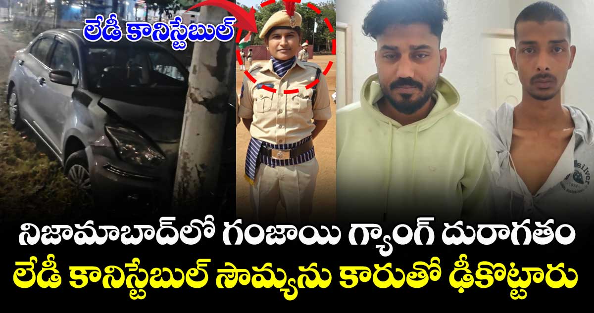 గంజాయి గ్యాంగ్ బరితెగించింది. గంజాయి మత్తులో కన్నూమిన్నూ ఆడటం లేదు.. పోలీసులను లెక్కచేయకపోవటం ఒకటి అయితే.. ఏకంగా పోలీసులను చంపాలని చూడటం ఇప్పుడు దేశ వ్యాప్తంగా సంచలనం రేపుతోంది. తెలంగాణ రాష్ట్రం నిజామాబాద్ సిటీ శివార్లలో.. 2026, జనవరి 24వ తేదీ తెల్లవారుజామున జరిగిన ఘటన పోలీస్ శాఖనే షేక్ చేసింది. గంజాయి గ్యాంగ్ వెళుతున్న కారును అడ్డుకోబోయిన లేడీ కానిస్టేబుల్ సౌమ్యను.. కారుతో ఢీ కొట్టి మరీ పారిపోయారు గంజాయి గ్యాంగ్. పూర్తి వివరాల్లోకి వెళితే..
