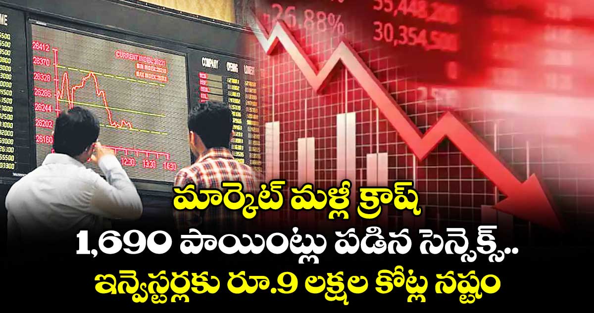 ముంబై: యుద్ధం ముగుస్తుందనే ఆశలు సన్నగిల్లడంతో భారత స్టాక్ మార్కెట్లు శుక్రవారం భారీగా నష్టపోయాయి. మరో రూ.తొమ్మిది లక్షల కోట్ల ఇన్వెస్టర్ల సంపద ఆవిరైంది. ఈ నెలలో ఇప్పటివరకు నిఫ్టీ 11 శాతం పడగా, ఇన్వెస్టర్లు రూ.30 లక్షల కోట్లు నష్టపోయారు. నిఫ్టీ శుక్రవారం 487 పాయింట్లు తగ్గి 22,850 కిందకు జారింది.