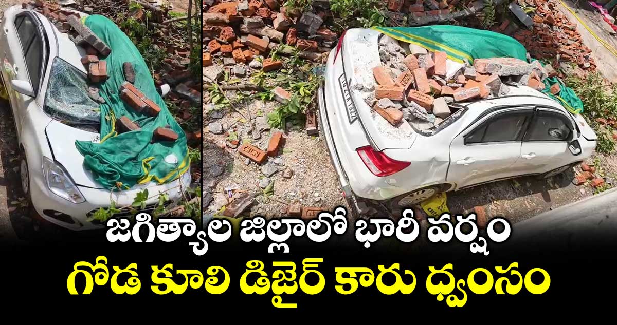 తెలంగాణ వ్యాప్తంగా అకాల వర్షాలు కురిసాయి. ఈదురుగాలులు, ఉరుములు మెరుపులతో కురిసిన వర్షానికి చాలా చోట్ల తీవ్ర పంట నష్టం వాటిల్లింది. కోతకు వచ్చిన పంట నేలరాలడంతో లబోదిబోమంటున్నారు రైతులు. మంగళవారం ( మార్చి 31 ) ఉదయం కురిసిన వర్షం కారణంగా జగిత్యాల జిల్లాలో గోడ కూలి కారు పూర్తిగా ధ్వంసం అయ్యింది. ఇందుకు సంబంధించి వివరాలిలా ఉన్నాయి..
