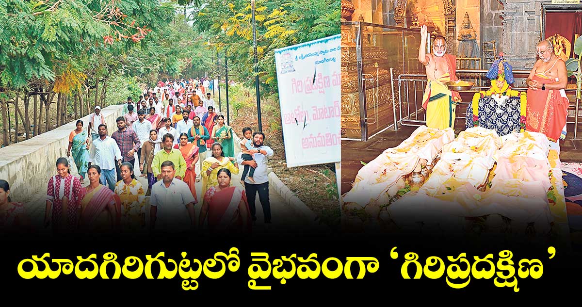 యాదగిరిగుట్ట, వెలుగు: యాదగిరిగుట్ట శ్రీలక్ష్మీనరసింహస్వామి జన్మనక్షత్రమైన స్వాతి నక్షత్రం సందర్భంగా.. సోమవారం దేవస్థానం ఆధ్వర్యంలో ‘సామూహిక గిరిప్రదక్షిణ’ కార్యక్రమాన్ని చేపట్టారు. తెల్లవారుజామున ఉదయం 5:30 గంటలకు వైకుంఠ ద్వారం వద్ద నరసింహస్వామి పాదాలకు భక్తులు ప్రత్యేక పూజలు నిర్వహించి గిరి ప్రదక్షిణ ఆరంభించారు.