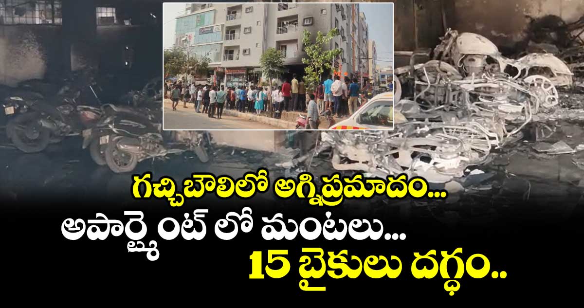 గచ్చిబౌలిలో అగ్నిప్రమాదం జరిగింది. అపార్ట్మెంట్ లో ఒక్కసారిగా మంటలు చెలరేగడంతో ముగ్గురికి తీవ్ర గాయాలవ్వగా 15 బైకులు పూర్తిగా దగ్దమయ్యాయి. సోమవారం ( ఏప్రిల్ 20 ) జరిగిన ఈ ఘటనకు సంబంధించి వివరాలిలా ఉన్నాయి... గచ్చిబౌలి పోలీస్ స్టేషన్ పరిధిలోని టీఎన్జీవో కాలనీలోని ఓ అపార్ట్మెంట్ లో అగ్నిప్రమాదం జరిగింది. సెల్లార్ లో ఒక్కసారిగా మంటలు చెలరేగడంతో దట్టమైన పొగ కమ్ముకుంది. ఈ ఘటనలో ముగ్గురికి తీవ్ర గాయాలవ్వగా 15 బైకులు పూర్తిగా దద్గమయ్యాయి.