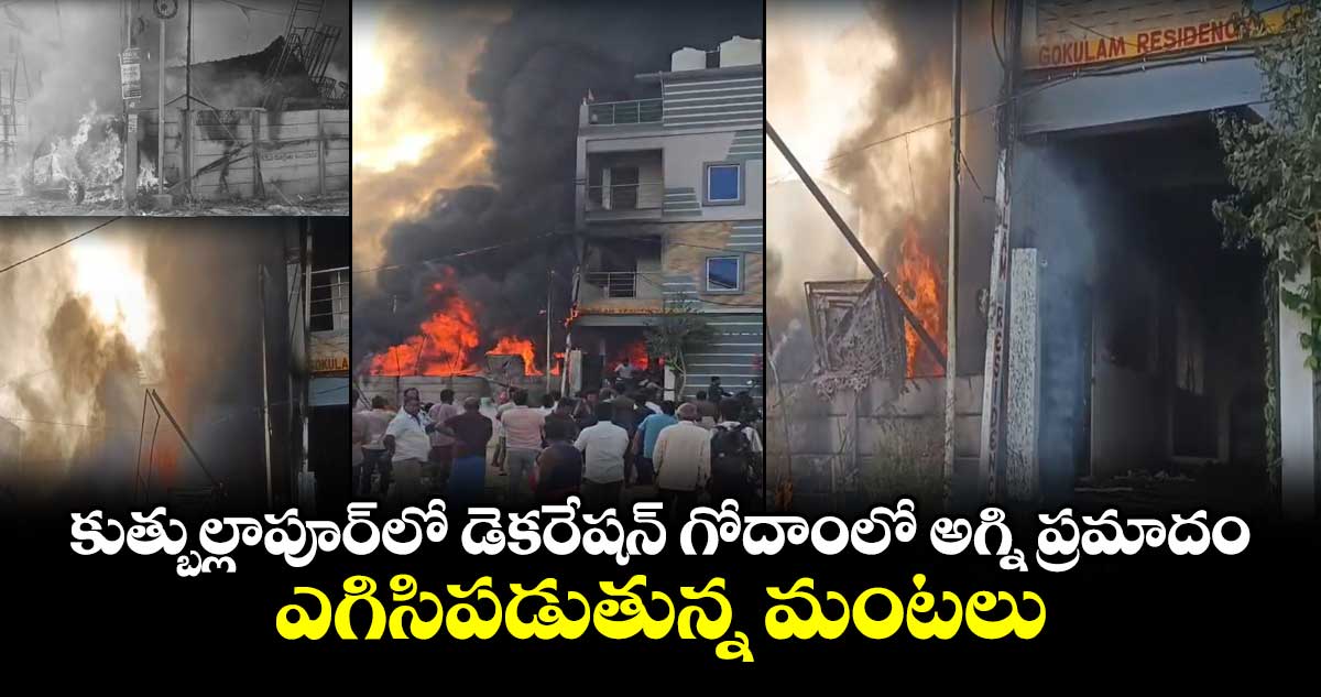 మేడ్చల్ మల్కా్జ్ గిరి జిల్లాలోని కుత్బుల్లాపూర్ పరిధిలోని బహుదూర్ పల్లి, గ్రీన్ హిల్స్ కాలనీలో గురువారం (ఏప్రిల్ 9) ఉదయం ఓ డెకరేషన్ గోదాంలో ఒక్కసారిగా ఎగిసిపడ్డాయి. గోదాం పక్కనే ఉన్న ఇంటికి కూడా మంటలంటుకున్నాయి. గోదాంలో ఎక్కువగా ప్లాస్టిక్ ఉండటంతో పెద్ద ఎత్తున మంటలు, పొగ ఎగిసిపడ్డాయి. ఈ ప్రమాదంలో గోదాం ముందు పార్క్ చేసిన ఉన్న కారుకు మంటలంటుకొని పూర్తిగా దగ్ధమైంది.