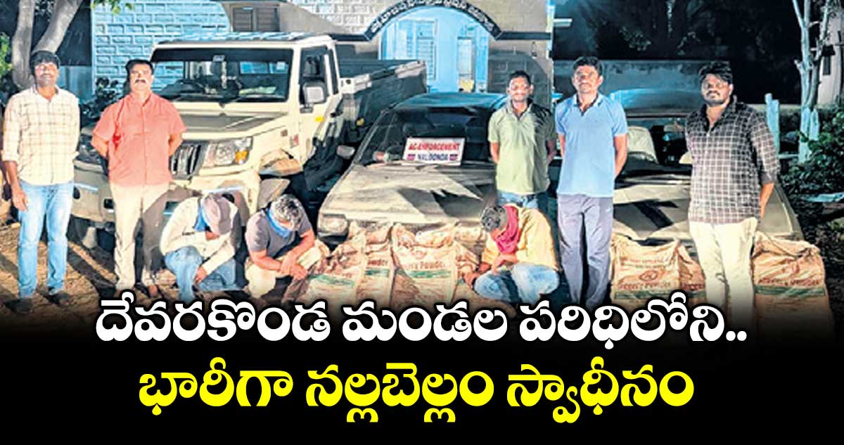 దేవరకొండ, వెలుగు : నల్గొండ జిల్లా దేవరకొండ మండల పరిధిలోని పడ్మట్ పల్లి క్రాస్ రోడ్ వద్ద ఆదివారం తెల్లవారుజామున ఎక్సైజ్ పోలీసులు నిర్వహించిన ఆకస్మిక తనిఖీల్లో భారీగా అక్రమ సరుకు పట్టుబడింది. ఎక్సైజ్ సీఐ శ్రీనివాస్ తెలిపిన వివరాల ప్రకారం.. హైదరాబాద్ నుంచి కొండమల్లేపల్లి, దేవరకొండ, చందంపేట ప్రాంతాలకు అక్రమంగా తరలిస్తున్న 18 క్వింటాళ్ల నల్లబెల్లం, 70 కిలోల పటిక, 10 లీటర్ల నాటుసారాయిని పోలీసులు స్వాధీనం చేసుకున్నారు.