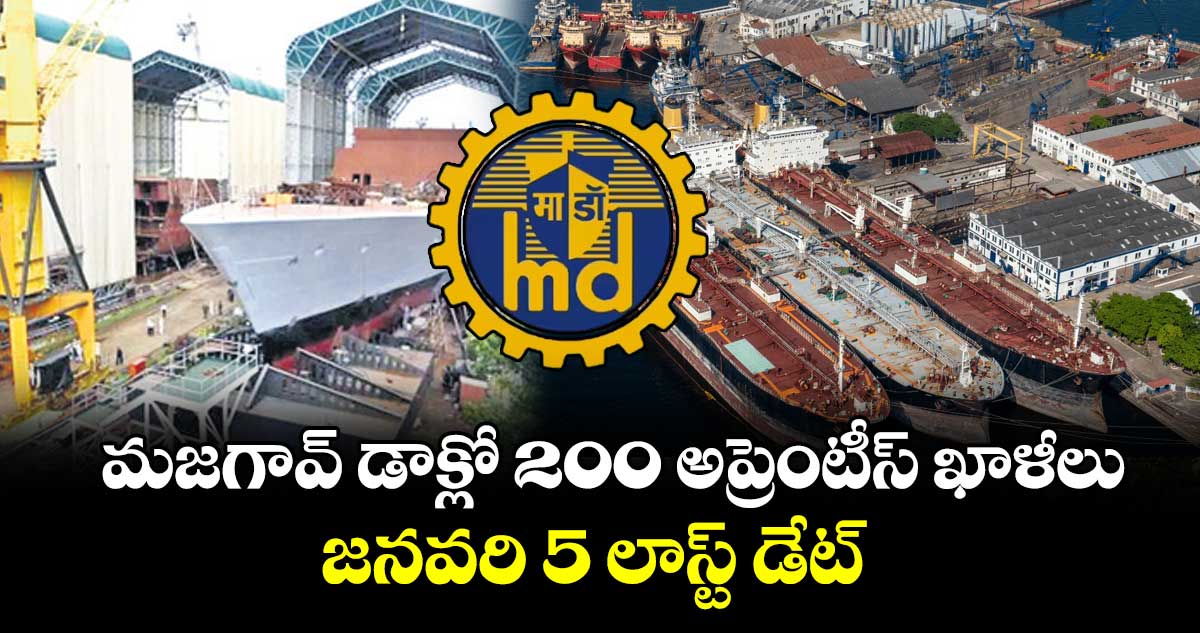 మజగావ్ డాక్ లిమిటెడ్ (ఎండీఎల్) అప్రెంటీస్ ఖాళీల భర్తీకి నోటిఫికేషన్ విడుదల చేసింది. ఆసక్తి, అర్హత గల అభ్యర్థులు ఆన్లైన్లో అప్లై చేసుకోవచ్చు. దరఖాస్తు ఫారమ్ను సమర్పించడానికి చివరి తేదీ 2026, జనవరి 05.