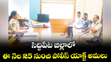 Read Moreసిద్దిపేట జిల్లాలో ఈ నెల 25 నుంచి పోలీస్ యాక్ట్ అమలు
