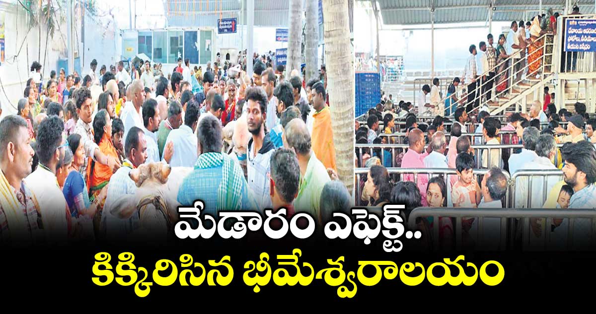 వేములవాడ రాజరాజేశ్వర స్వామి అనుబంధ భీమేశ్వర ఆలయం ఆదివారం మేడారం భక్తులతో కిక్కిరిసిపోయింది. సమ్మక్క–సారలమ్మ జాతరకు వెళ్లేముందు వేములవాడ రాజన్న, భీమన్న స్వామివార్లను దర్శించుకోవడం ఆనవాయితీ. దీంతో రాష్ట్రంలోని వివిధ ప్రాంతాల నుంచి పెద్ద సంఖ్యలో భక్తులు తరలివచ్చారు. భీమేశ్వర ఆలయంలో స్వామి వారికి కోడె మొక్కు చెల్లించుకున్నారు.